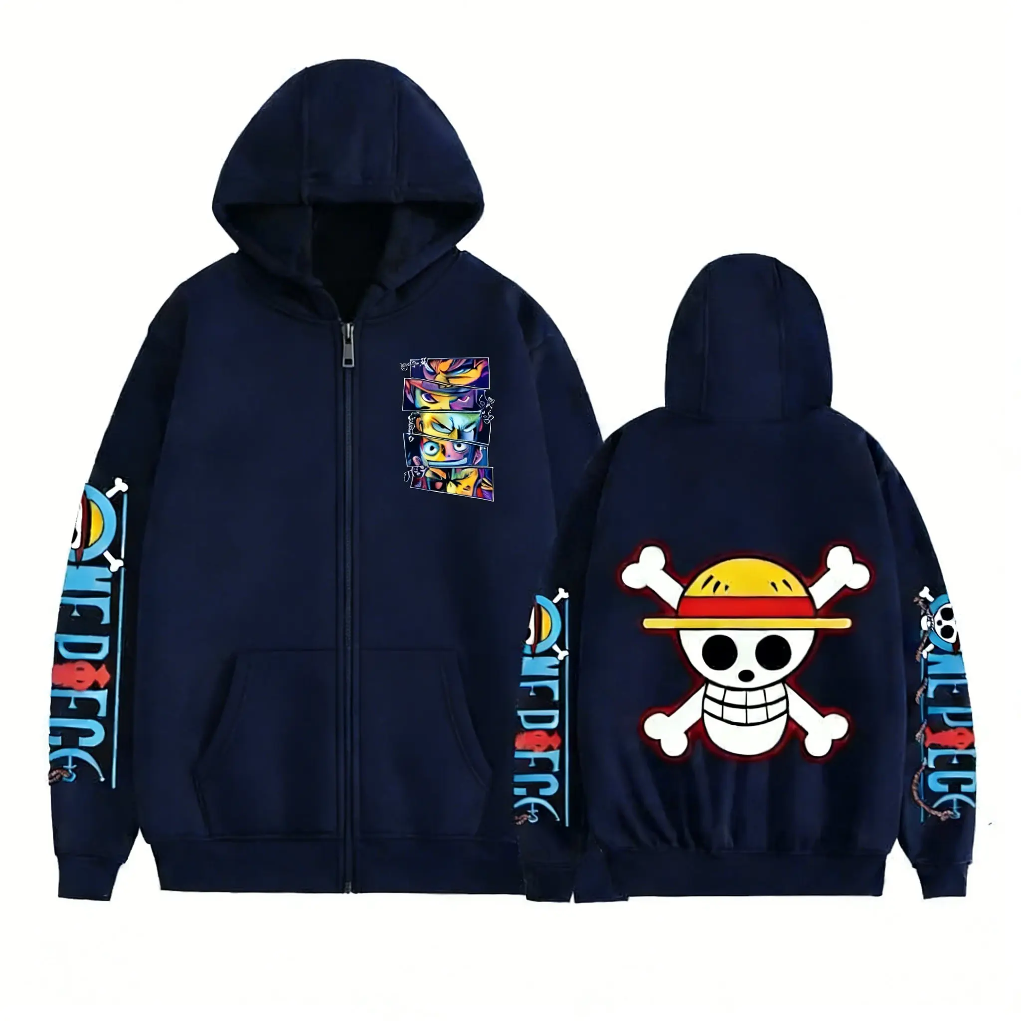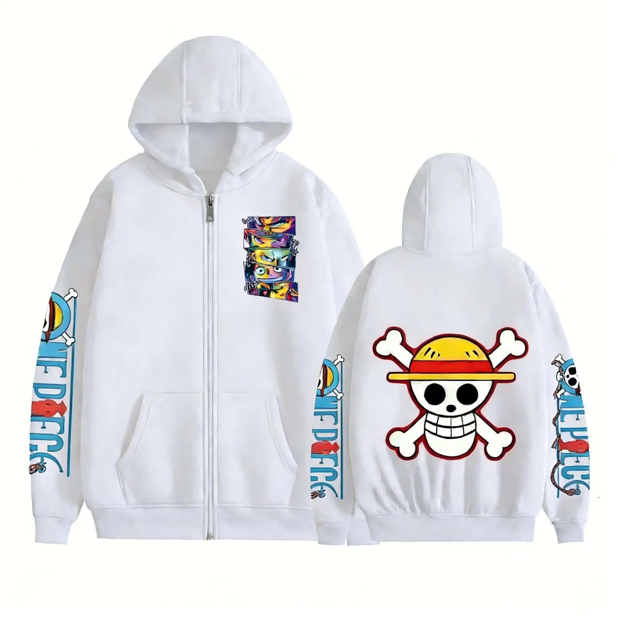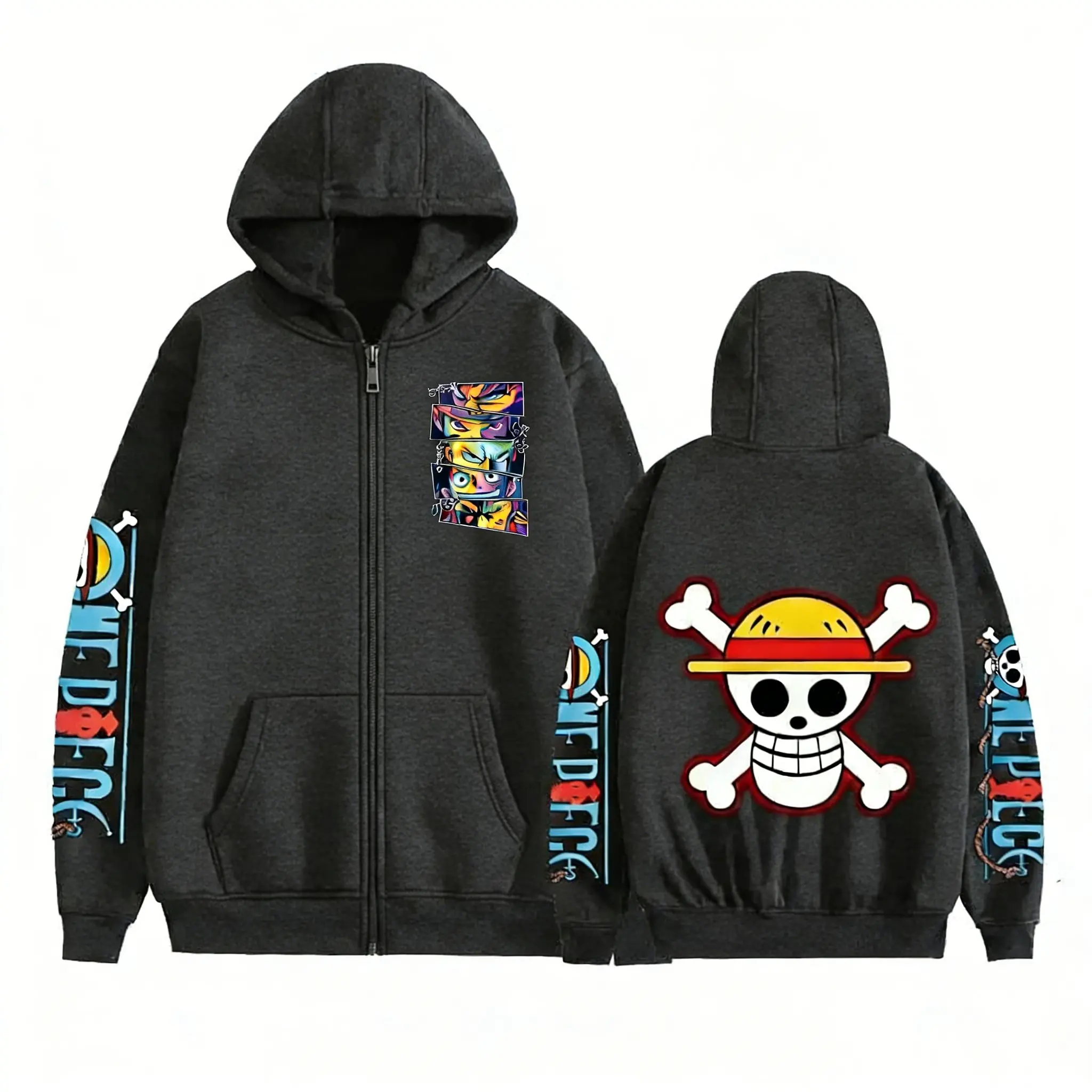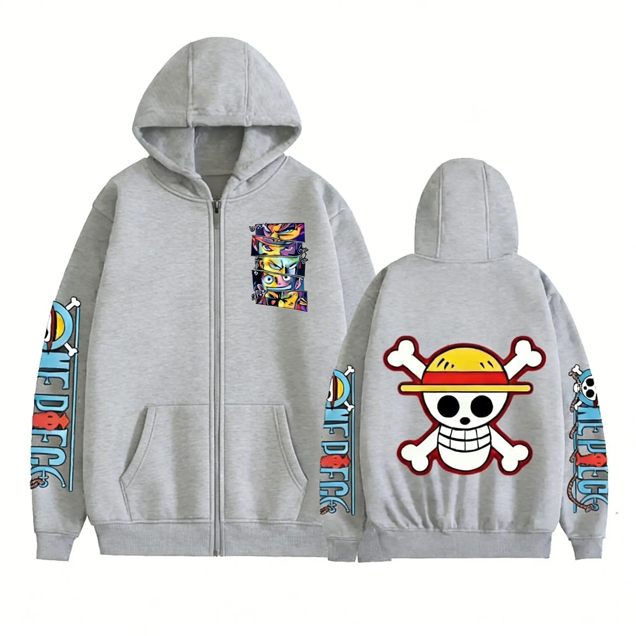 Upgrade your streetwear collection with this 2026 Spring One Piece Graphic Hoodie Zip Up, designed for anime lovers and fashion-forward individuals. Featuring a bold anime skeleton print, this hoodie blends comfort, attitude, and modern street style—perfect for daily wear, casual outings, and anime-inspired looks.