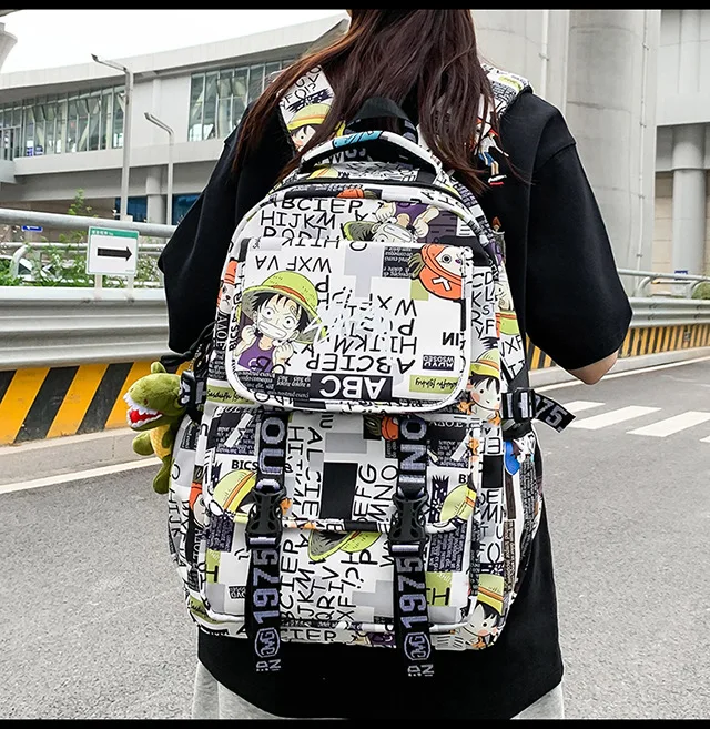 One Piece Luffy backpack, anime school backpack, Luffy graffiti backpack, high capacity student backpack, anime backpack for boys and girls, One Piece school bag.