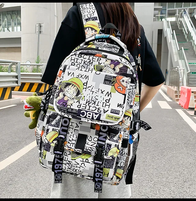Upgrade everyday school style with the Anime Male and Female High-Capacity One Piece Luffy Graffiti Printed Backpack. Designed specially for middle and high school students, this backpack combines bold anime street-style graphics, large storage capacity, and daily comfort—perfect for students who want functionality with fandom flair.