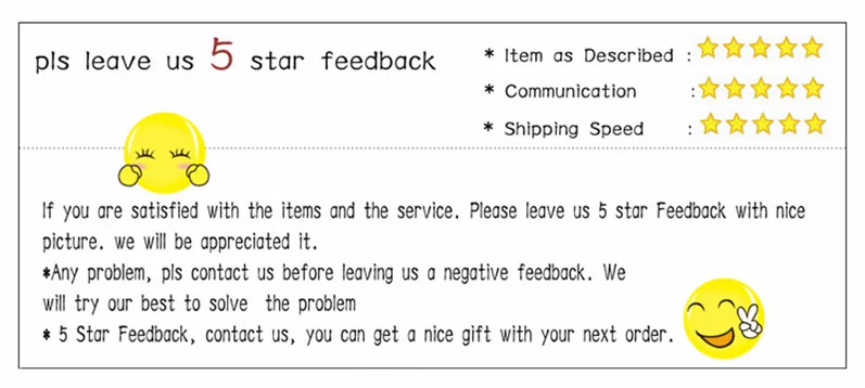If you are not satisfied with the items, please feel free to contact me for solution instead of leaving neutral or negative feedback, which means you do not need our after-sale service. We will try our best to solve the problem.