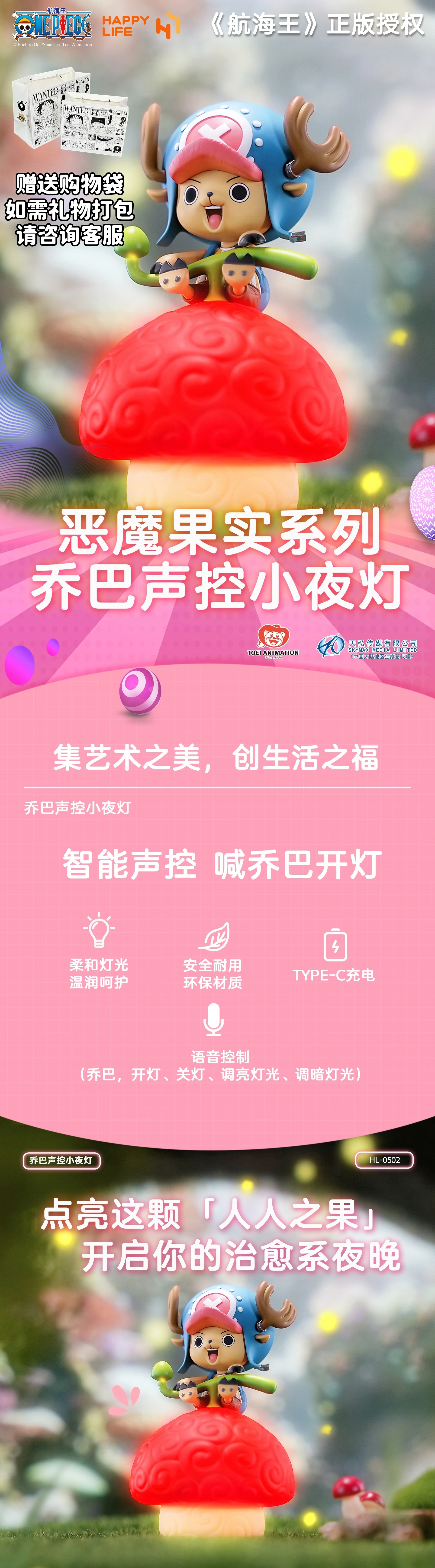 Turn your room into an anime fantasy with the One Piece Devil Fruit Series Voice-Controlled Night Light. Designed for true fans, this unique anime night light combines collectible figure aesthetics with smart voice control and soft ambient lighting. Featuring fan-favorite characters like Luffy, Nico Robin, Chopper, and Portgas D. Ace, this piece works perfectly as both a desktop toy and a functional night lamp.