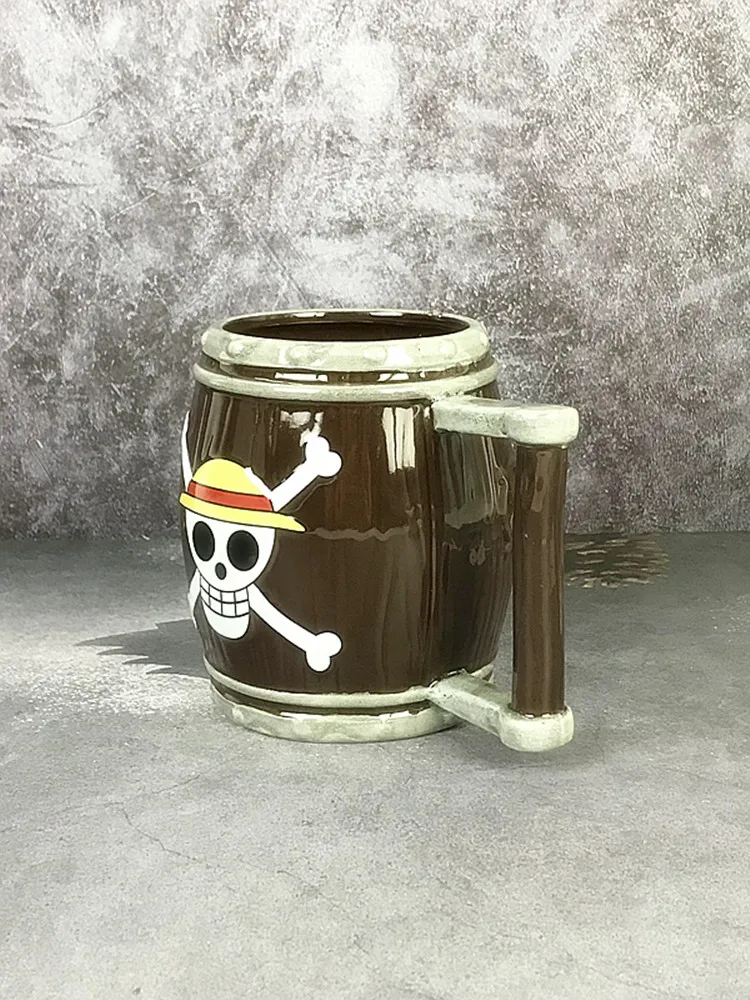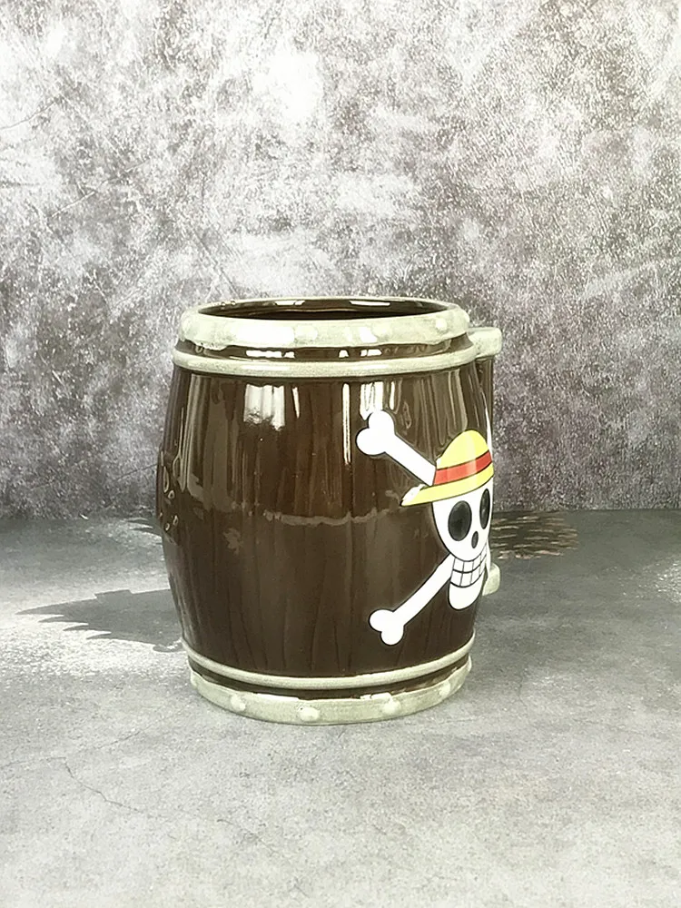 This mug isn’t mass-produced plastic—it’s handmade ceramic art. The wooden barrel modeling, hand-brushed colors, and artisanal finish give every piece a slightly unique character, making it feel authentic and collectible for One Piece fans.