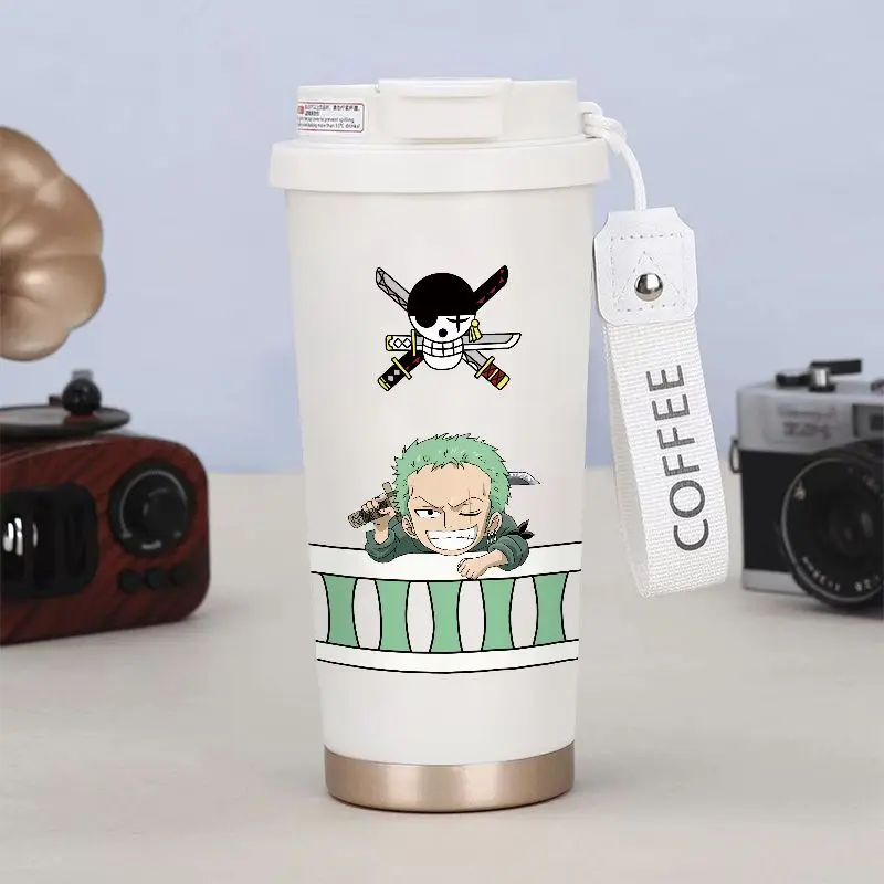 Roronoa Zoro thermos mug, One Piece stainless steel mug, anime travel thermos cup, Zoro car thermos, One Piece student mug, anime gift thermos.