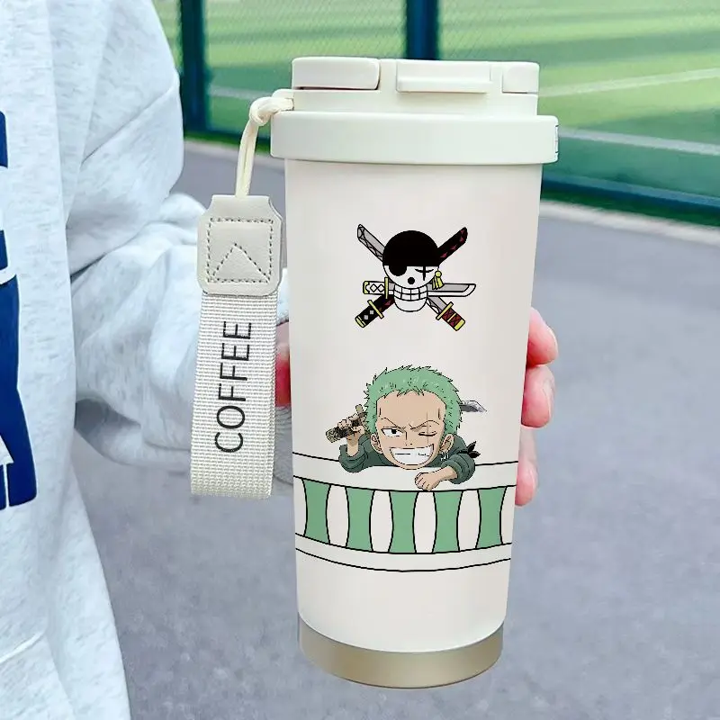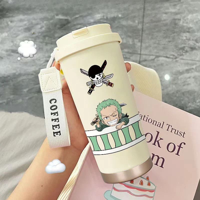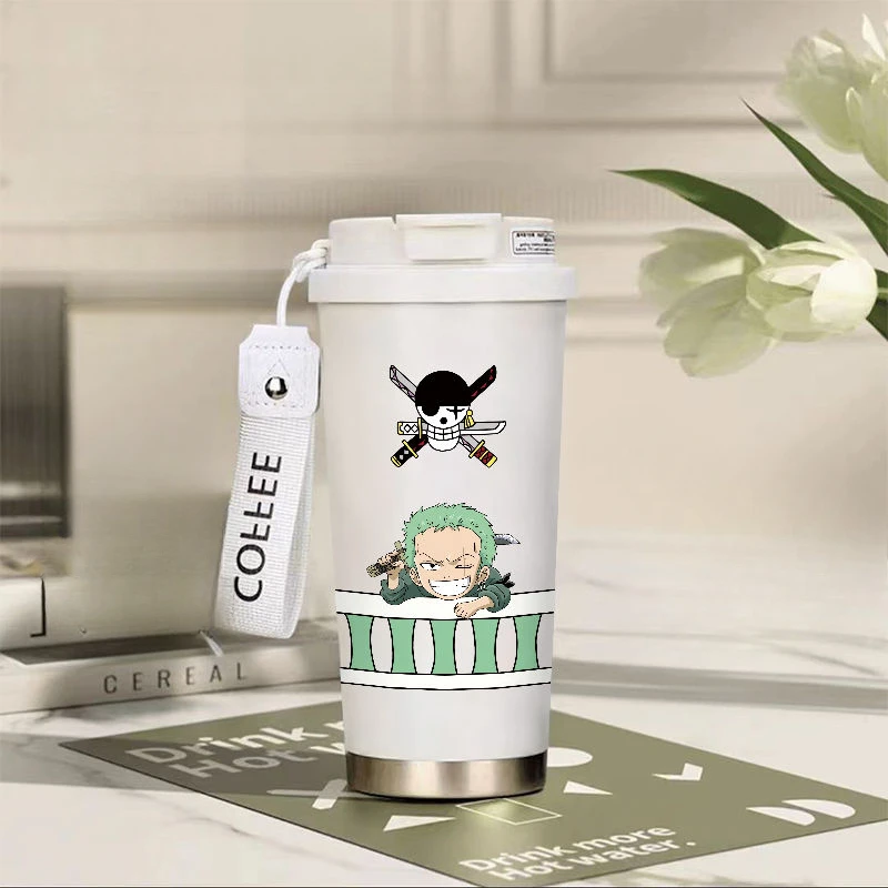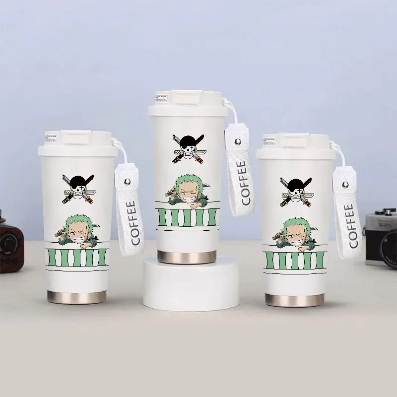 Roronoa Zoro thermos mug, One Piece stainless steel mug, anime travel thermos cup, Zoro car thermos, One Piece student mug, anime gift thermos.