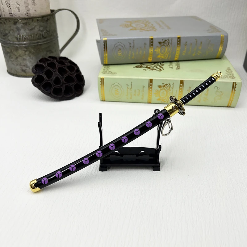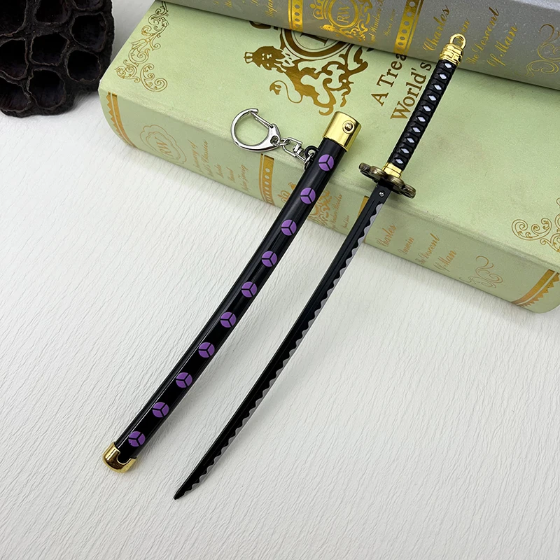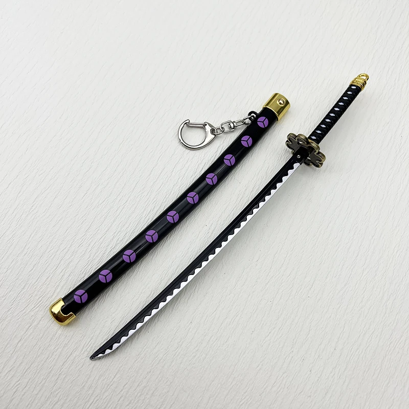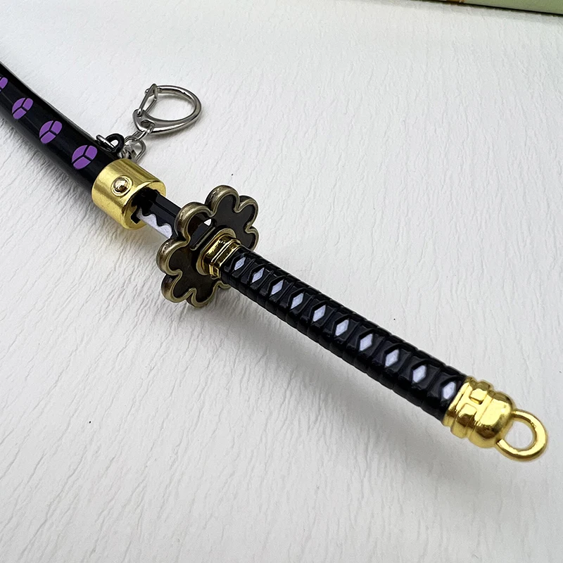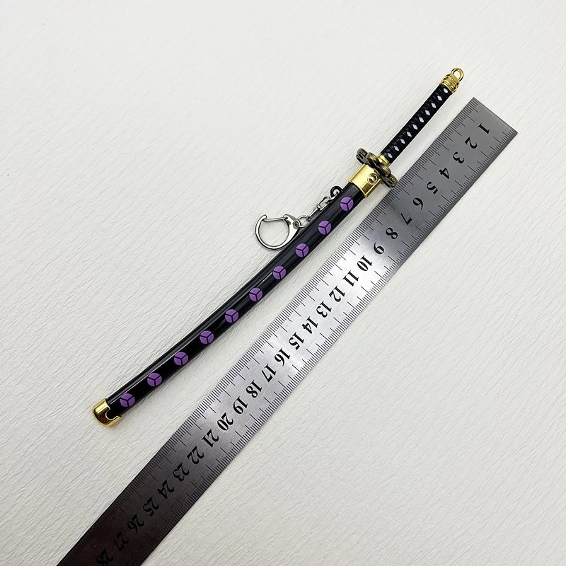 Shusui sword keychain, Zoro Shusui miniature sword, One Piece sword keychain, Roronoa Zoro metal keychain, anime samurai sword keychain, One Piece collectible ornament.